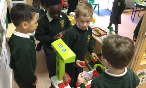 This week Reception have been exploring their new role play areas. They have a new farm shop to play with in the classroom and a flower shop outside. From the pictures we have taken, they look like they really enjoy being florists and farm shop workers.